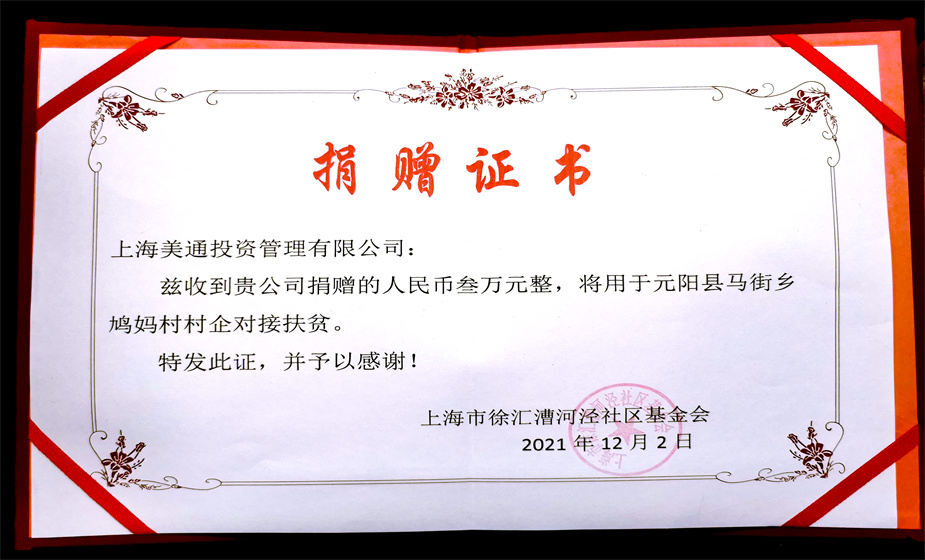 12月(yuè)2日(rì),我司經上(shàng)海(hǎi)市(shì)徐彙漕河(hé)泾社區(qū)™基金(jīn)會(huì)邀請(qǐng),出席其舉辦的(de)“2021年(nián)度漕河(hé)泾基金(jīn)會(huì)公益服務項目——益線牽”項目啓動儀式,在啓動儀式上(shàn g)我司被授予漕河(hé)泾優秀公益代表企業(yè)并獲得(de)“捐贈證書(shū)”